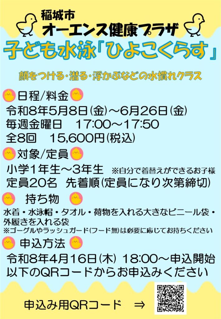 「ひよこくらす」は水に顔をつける、潜る、浮かぶなどの水慣れクラスです。
